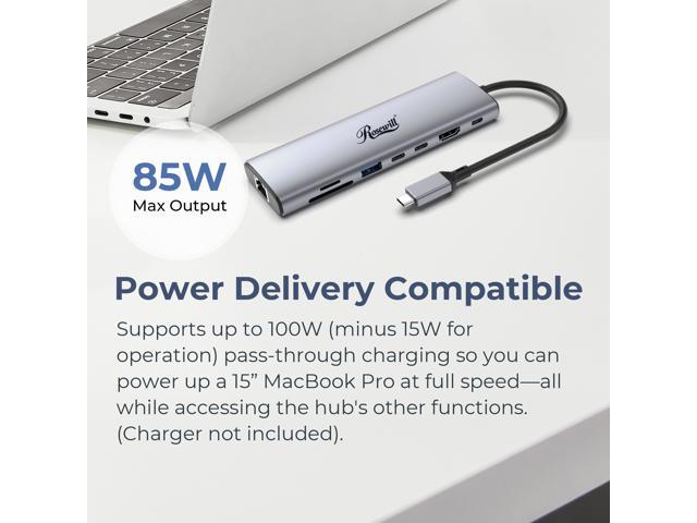 - PD 100W Fast Charging: Support up to 85W USB C pass-through charging via Type-C port to keep your laptop powered. 15W is reserved for other interface operations. Note: The USB-C port only supports charging and does not support data transmission or video output.