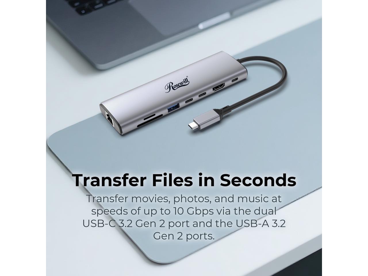 Rosewill 8-in-1 USB-C Hub with 4K HDMI 2.0 Display, 10Gbps USB-A Data Ports and for MacBook Pro, MacBook Air, Dell XPS, Lenovo Thinkpad, HP Laptops, RHUB-M8
