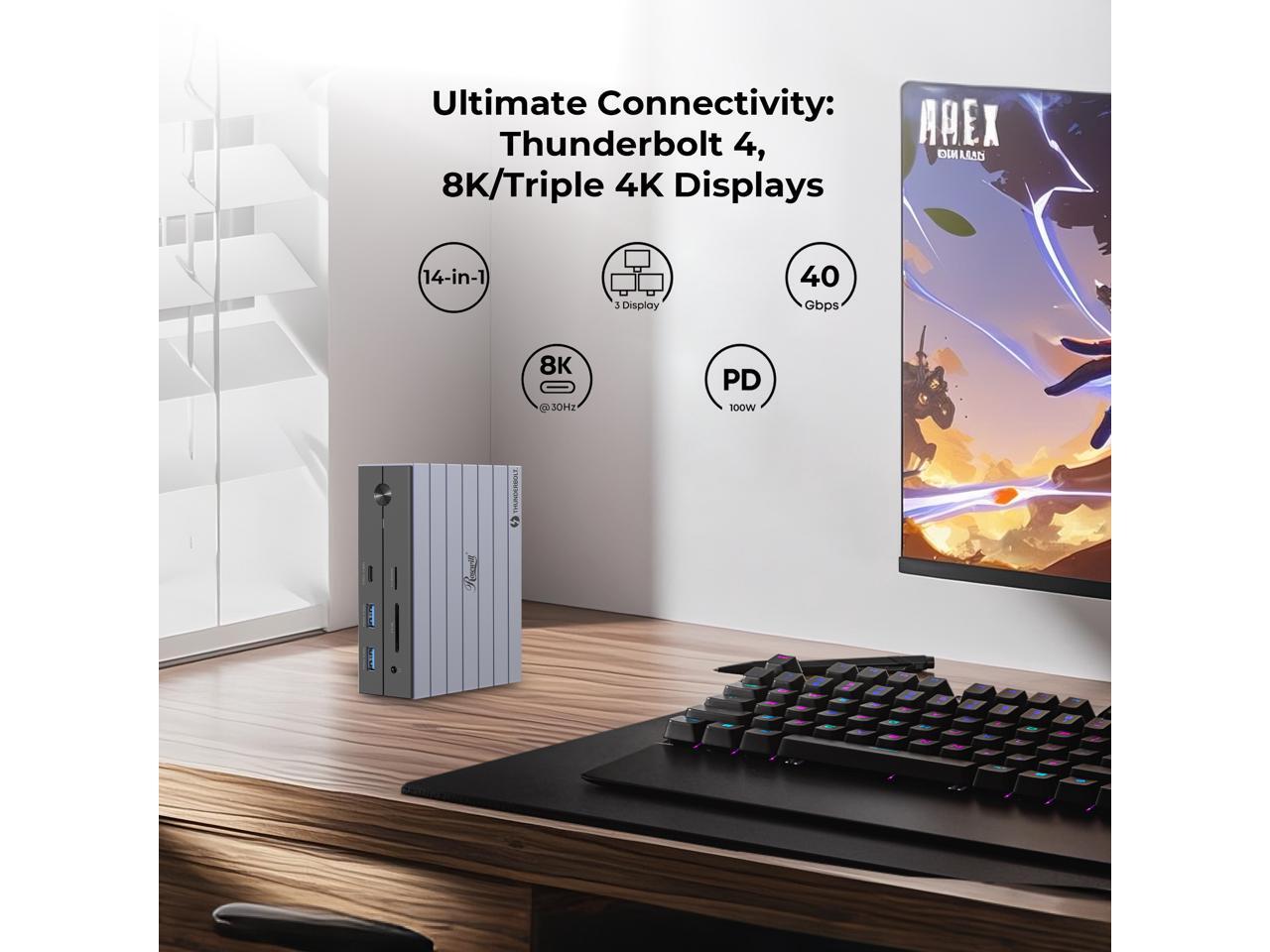 Rosewill 14-in-1 Thunderbolt 4 Certified, Laptop Docking Station with 100W Charging, 8K Display, Triple 4K Monitor Display for Windows and Mac, 135W Power Adapter & 40Gbps Data Transfer - RHUB-TB14
