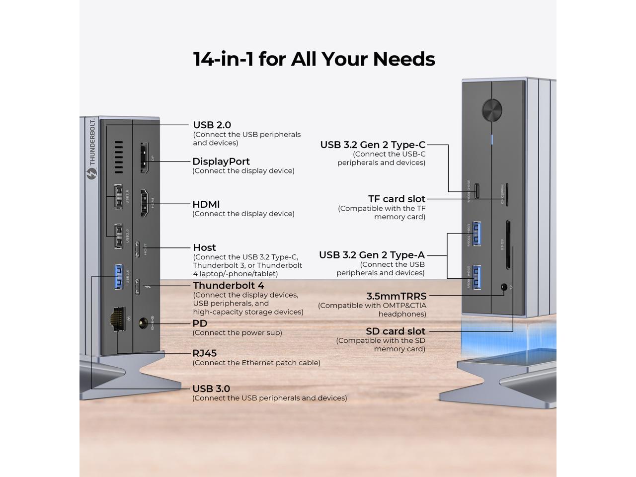 - Expanded Connectivity Hub: Integrating essential ports including Gigabit Ethernet, audio, and SD/TF card readers for comprehensive device integration.