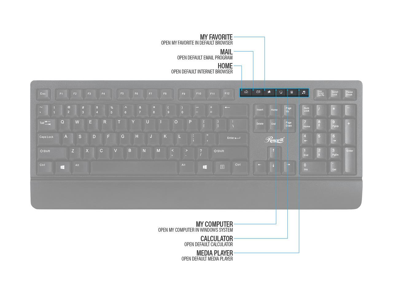 - Efficient Media Keys: Keyboard shortcut media keys save time by instantly opening favorite applications and web browsers at the push of a dedicated button