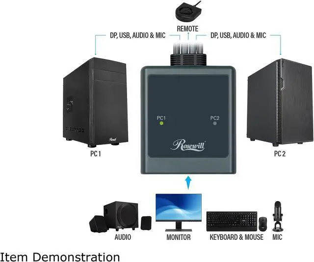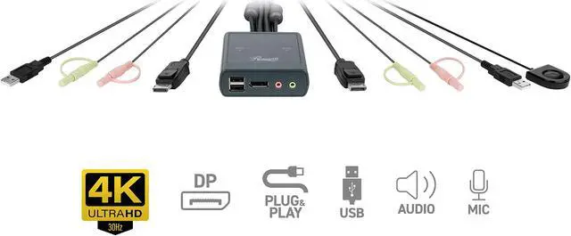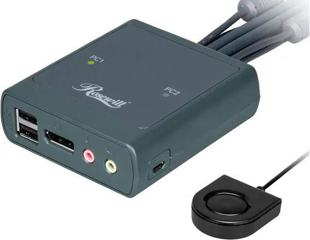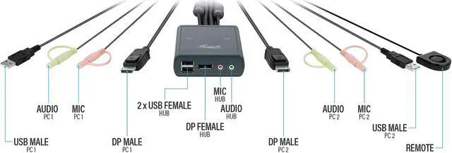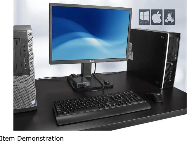 Connect two computers to control with your set of peripherals and easily switch between them via button controller. Supports any combination of Windows, Mac and Linux operating systems without software installation.