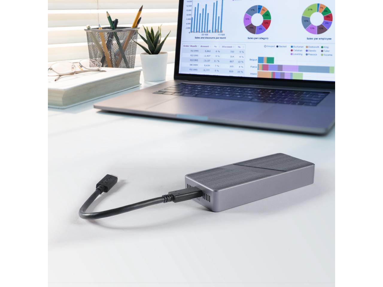 - Supports M-Key NVMe SSDs in sizes 2230/2242/2260/2280, with up to 8TB capacity. Compatible with USB4, Thunderbolt 3/4 host devices at speeds up to 40Gbps, and backward compatible with USB 3.2/3.1/3.0 ports up to 10Gbps