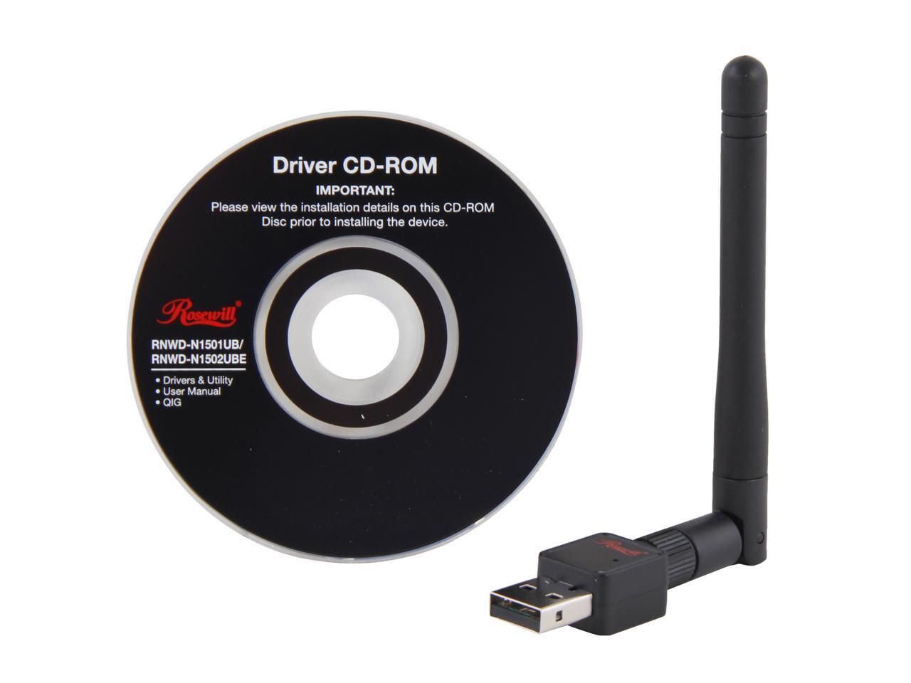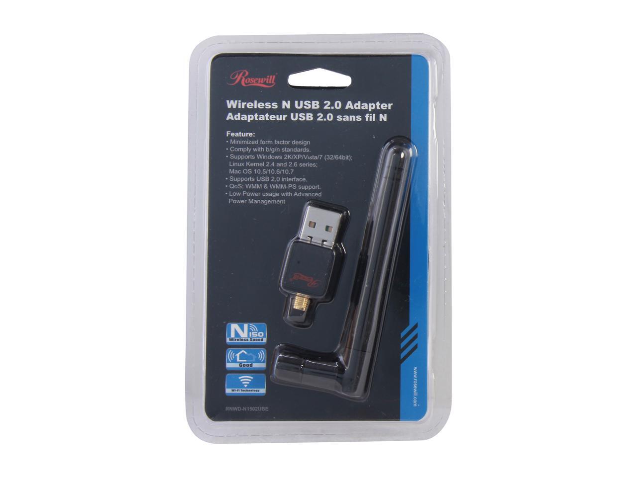 Rosewill RNWD-N1502UBE IEEE 802.11b/g/n, USB2.0 Wireless-N Mini External Antenna Adapter (1T1R) Up to 150Mbps Data Rates, WEP 64/128, WPA/WPA2