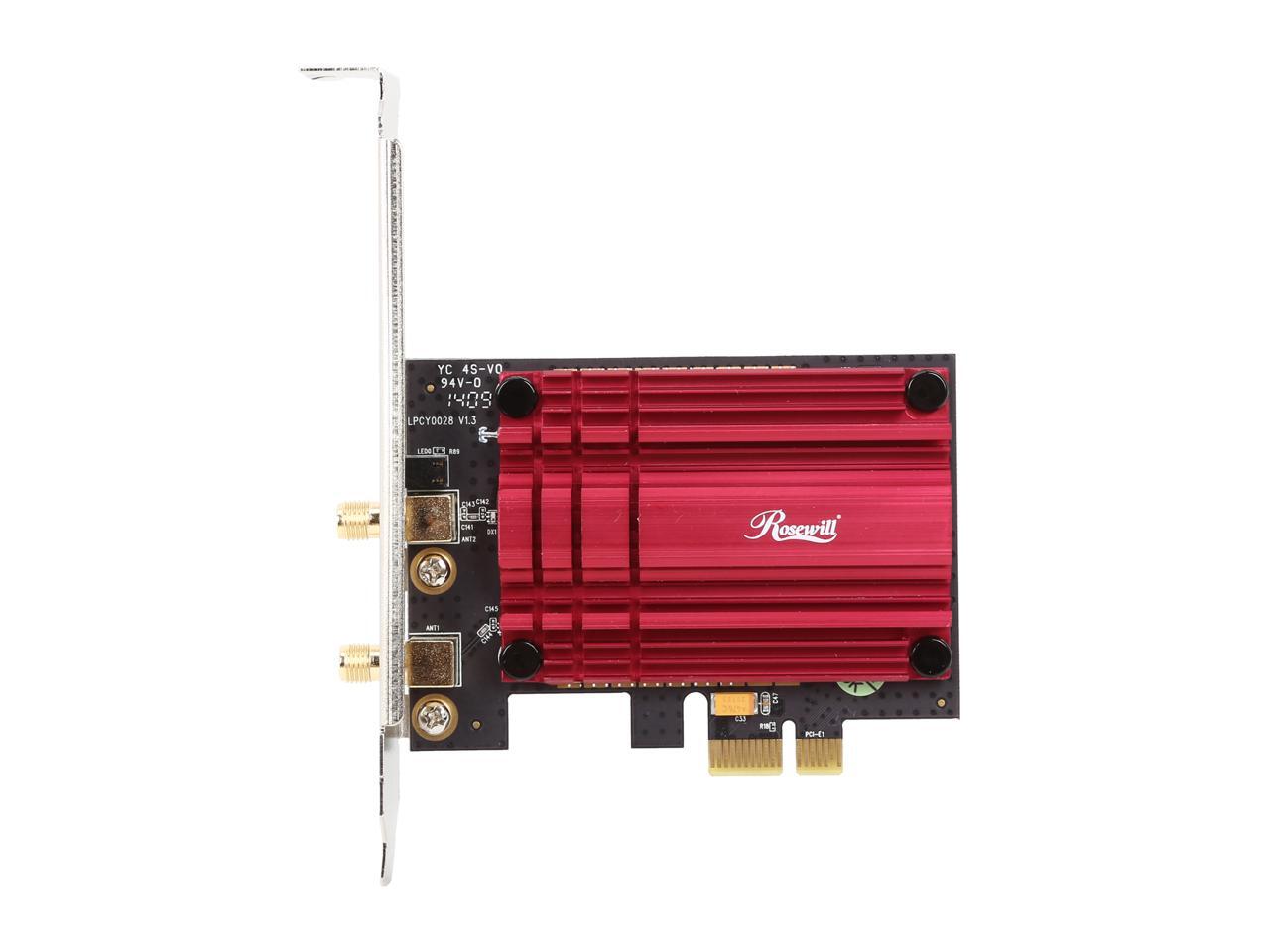 Rosewill RNX-AC1200PCE - Dual Band Wireless AC1200 Adapter, IEEE 802.11AC a/b/g/n, Up to 867 Mbps (5.0 GHz) + 300 Mbps (2.4 GHz) Wi-Fi Data Rates, PCI-E Interface