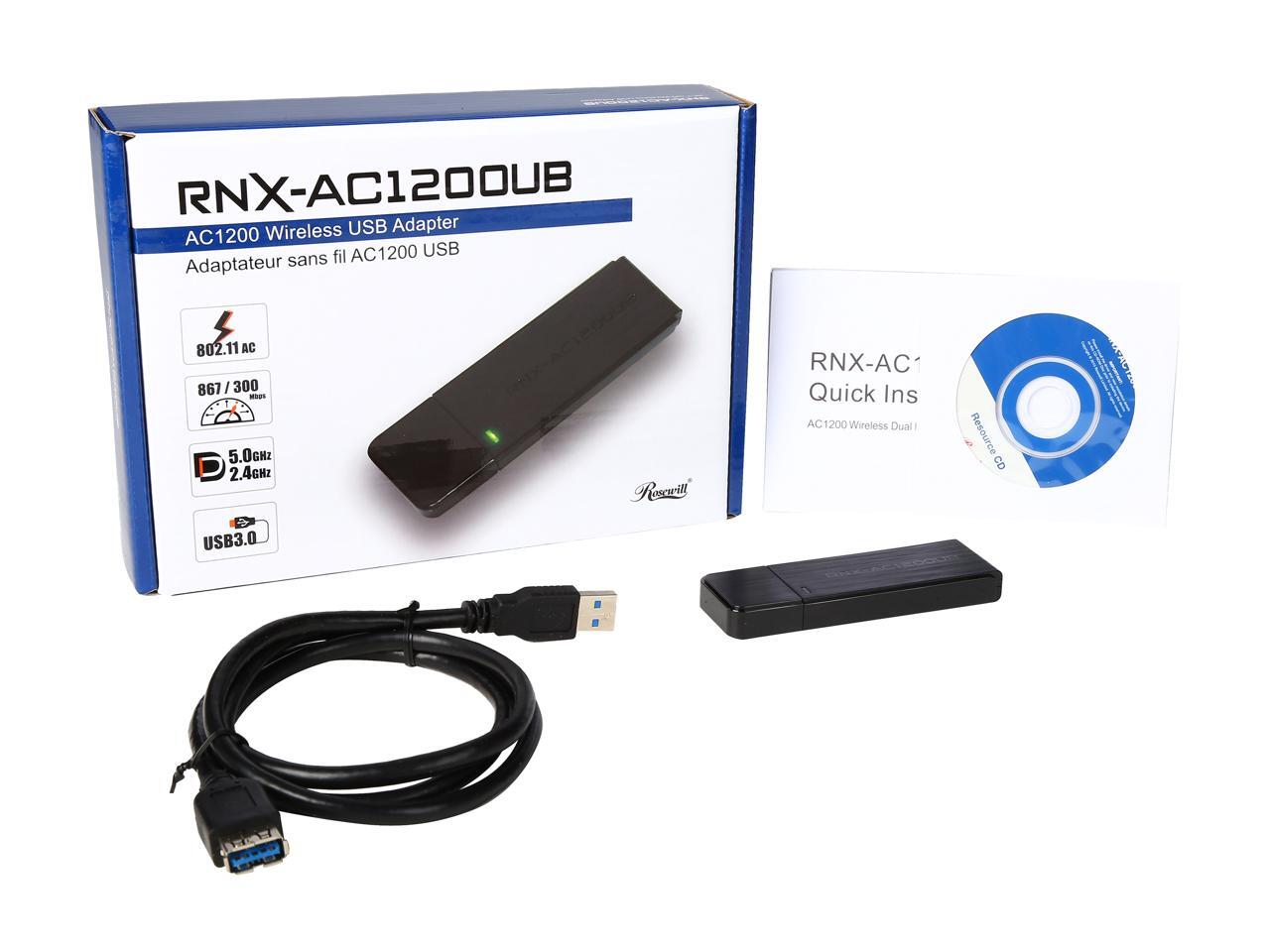 Rosewill RNX-AC1200UB, Dual Band Wireless AC1200 Wi-Fi Adapter, IEEE 802.11AC IEEE 802.11a/b/g/n, Up to 867 Mbps (5.0 GHz) + 300 Mbps (2.4 GHz) Wireless Data Rates, USB 3.0 Interface