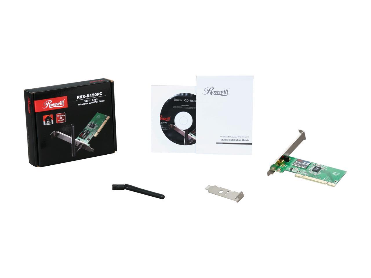 Rosewill RNX-N150PC Wireless Adapter (1T1R) IEEE 802.11b/g/n PCI 2.2 Up to 150Mbps Wireless Data Rates 64/128 bits WEP WPA (TKIP with IEEE802.1x) WPA2 (AES with IEEE802.1x) XP/ Vista/ Win7