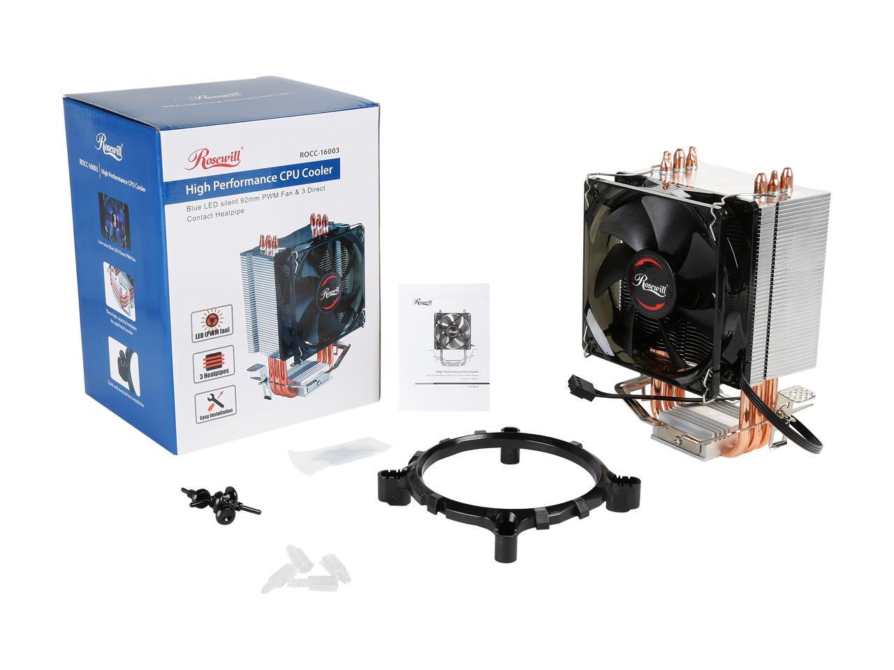 Rosewill Long Life Sleeve Bearing CPU Cooler, 92mm PWM Cooling Fan, 3 Direct Contact CPU Heatsink Pipes, Supports Intel i3/i5/i7 CPU Socket LGA 775/1366/1150/1151/1155/1156 & AMD CPU - ROCC-16003