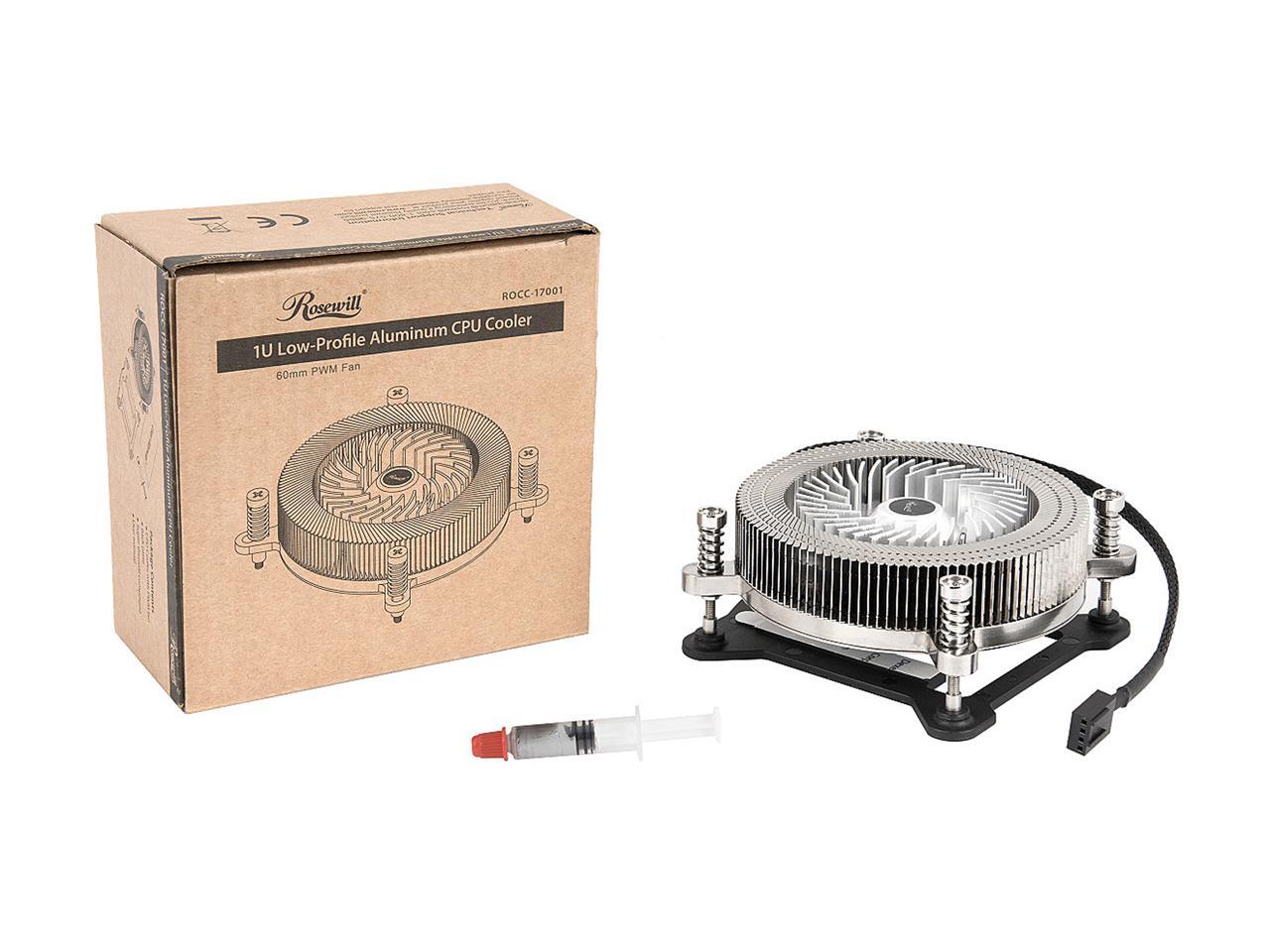 Rosewill ROCC-17001 1U Low Profile CPU Cooler, Full Copper & Aluminum Structure 60 mm PWM Fan & 4-Pin Connector, Slim 27mm Height