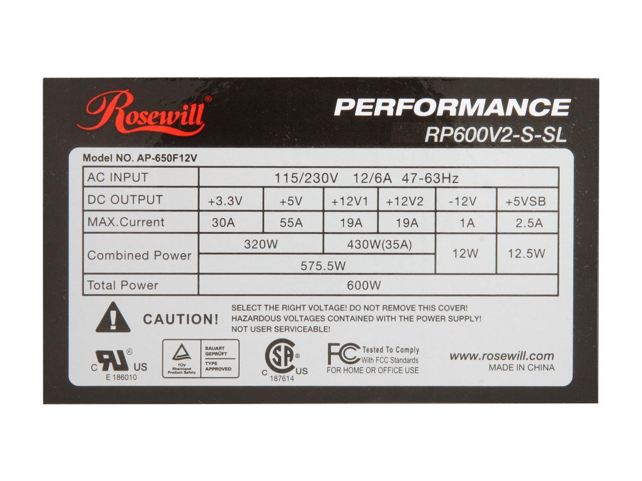 Rosewill RP600V2-S-SL 600W ATX12V v2.01 SLI Ready Power Supply