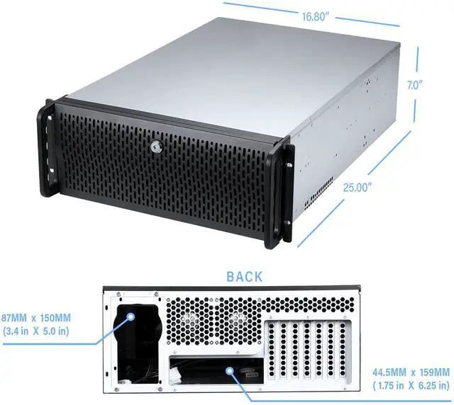 The 4U rackmount server case is designed to allow you to install up to (8) 3.5" HDDs and an additional (3) 5.25" devices.