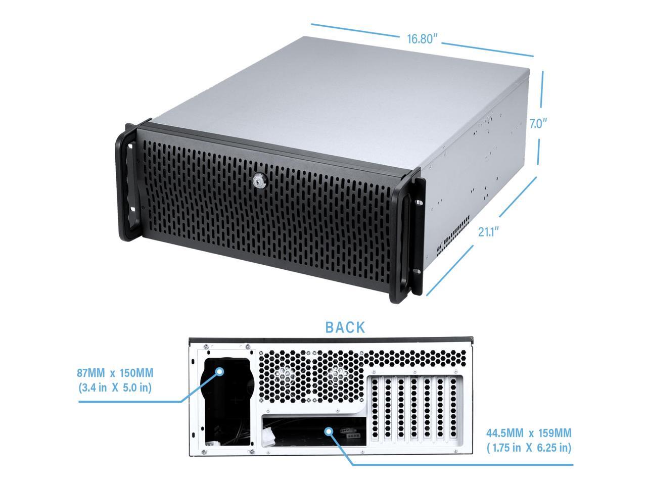 - Spacious Chassis: 4U server case with 8 internal 3.5" HDD bays and 3 extra 5.25" device slots.