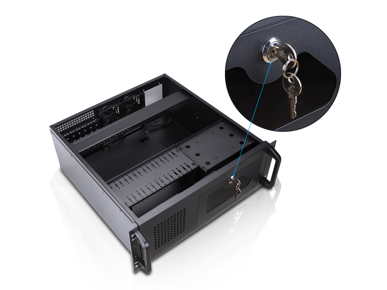 Rosewill 4U Server Chassis Rackmount Case | 7 3.5" Bays, 2 5.25" Devices| ATX, CEB Compatible | 1 120mm PWM Fan, 2 80mm PWM Fans | 2x USB 3.0 | Front Panel Lock and Key | Silver/Black - RSV-R4100U