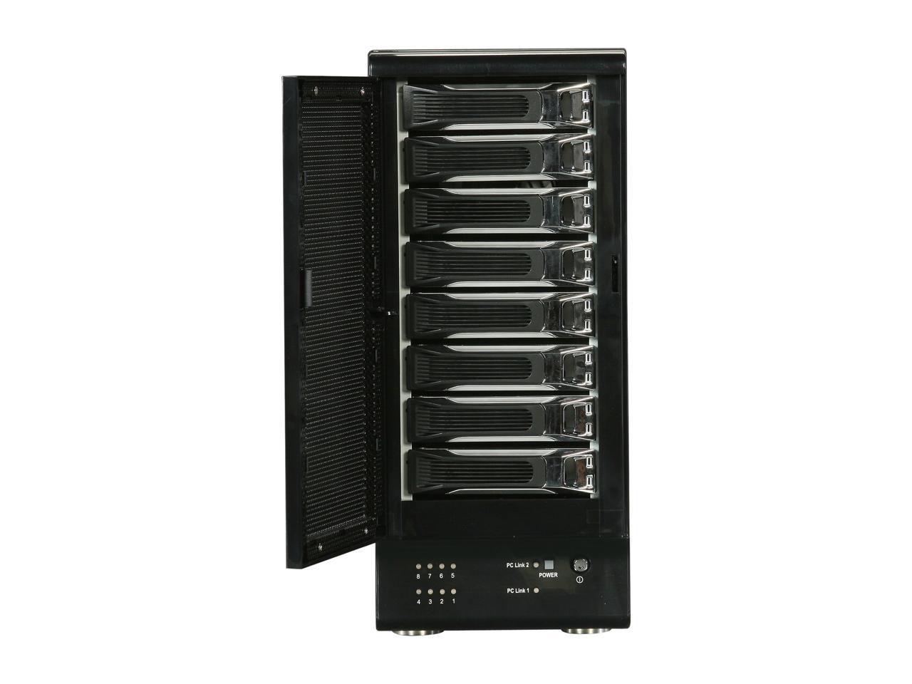 Rosewill RSV-S8 - 8-Bay 2.5" & 3.5" Hot-Swappable RAID Storage Enclosure System Bundled with PCIe Controller Card - 120mm Cooling Fan, Port Multiplier, Tray Design, RAID 0 / 1 / 5 / 10 / 5 + Spare / S