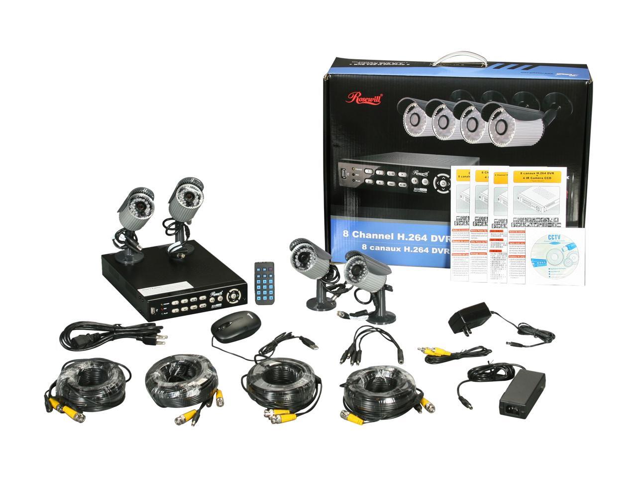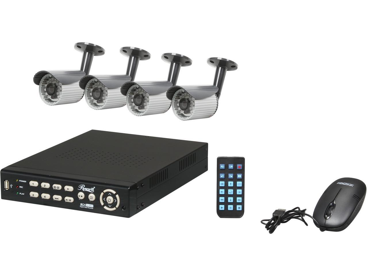 Rosewill RSVA-11001 8 channel + 4 Sony 1/4" CCD 21 IR LED Bullet Cameras, H.264 High performance DVR, Remote Monitoring/Real time record DVR Kit (HD Sold Separately)