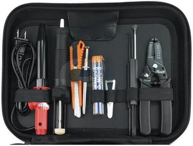 | Specifications | 6" Precision Wire Stripper 3pcs Solidering Aid Set Heat Sink Solder Core 3 Prong Holder Utility Knife Desoldering Pump Soldering Iron 3*3.8 Magnifier Glass Stainless Steel Tweezers 5" Stainless Steel Long Nose Plier Soldering Stand 1/2" Stainless Steel Side Cutter Plier Screwdrivers : -3.2*75mm,+3.2*75mm,-5*75mm,+5*75mm 10pcs Mini Electronic Combination Wrench Set (4*4.5mm/4.5*4mm/5*5.5mm/5*6mm/5.5*6mm/6*7mm/7*8mm/8*9mm/9*10mm/10*11mm) Multi-purpose Box 6pcs Precision Screwdriver Set (+#1*20mm, +#0*20mm, +#00*20mm, -2.3*20mm, -1.8*20mm, -1.4*20mm) PU Carrying Case (315*240*93mm) |