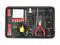 | Specifications | Reversible Ratchet Driver with 21-Piece Bit & Socket Set - Ratchet Handle - 5 Torx Bits: T8, T10, T15, T20, T25 - 2 Philips Bits: #1, #2 - 2 Flat Bits: 5mm, 6mm - 4 Square Bits: #0, #1, #2, #3 - 2 Pozidrive Bits: #1, #2 - 5 Socket Bits: 3/16", 1/4", 5/16", 11/32", 3/8" - Socket Adapter 6" #1 Phillips Screwdriver Spare Parts Box - Storage Box - Trilobular Thread Screws - Hex Washer Head (4*6): 6 PCS, Truss Head (6#*6): 6 PCS - Jumpers: 6 PCS - Washers: 6 PCS Reversible 1/8"& #0 Mini Screwdriver (With Pocket Chip) 9 Hex Key Set: 1/20", 1/16", 5/64", 3/32", 7/64", 1/8", 9/64", 5/32", 3/16" 5" Long Nose Pliers 5" Wire Cutter / Stripper Anti-Static Wrist Strap IC Insertion-Extraction Clipper Three Prongs Holder Tweezers Black Zipper Case |