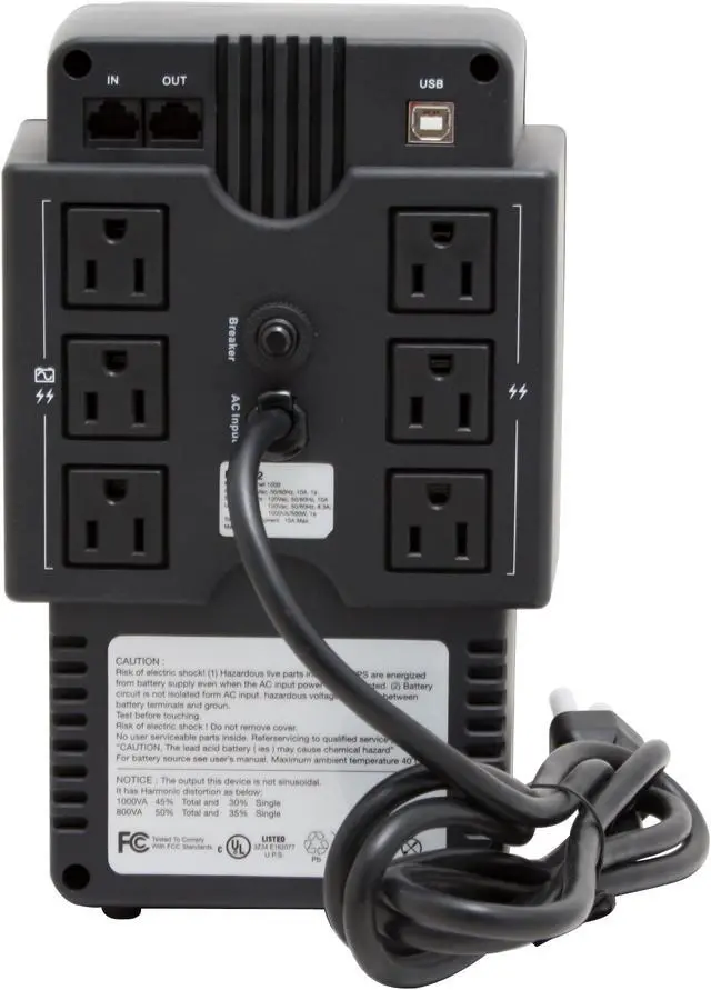 | Outlets | 3 NEMA 5-15R outlets for Surge Protection & Battery Backup + 3 NEMA 5-15R outlets for Surge Protection (W/O AVR) |