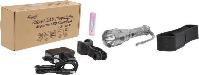 With a blend of performance, quality and rugged build, the Rosewill RLFL-13006 flashlight is great for everyday and emergency use, indoors and outdoors. Powered by a Li-ion 18650 battery, this model's long lifetime Cree XML-U2 LED produces high brightness of up to 1000 lm and illumination range up to 0.5 miles. Its toughly built body is shock proof and water resistant, and an included bicycle bracket enables secure mounting to outdoor gears. Plus, compact and lightweight, this flash light can be easily packed with other essentials and ready for use, without adding much bulk.