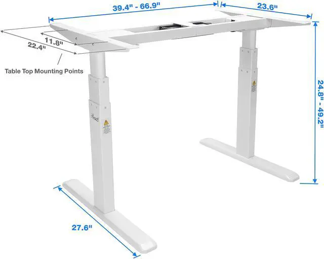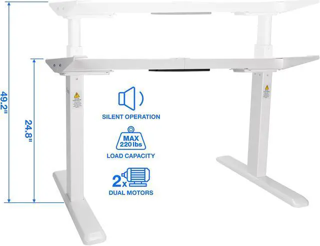 Set your desired desk height between 24.8” to 49.2” for sitting or standing with the push of automatic buttons. This adjustable desk frame is L 40 x W 27.6 x H 24.8”, easily converts and features dual motors to support a max load capacity up to 220 lbs.