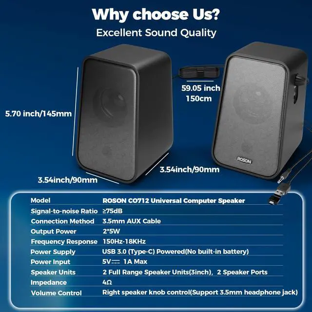 ROSON CO712 is a compact desktop speaker designed for high-resolution audio reproduction. With its impressive power output and sleek design, it’s the perfect addition to any desktop setup.