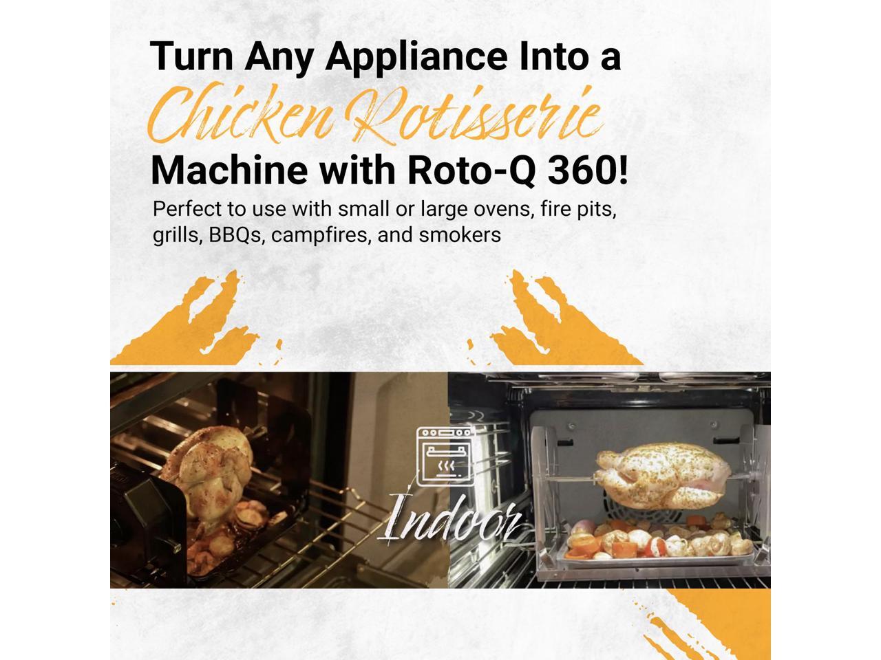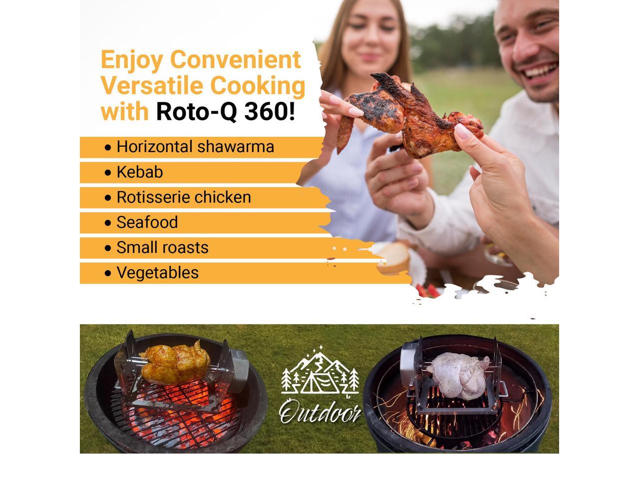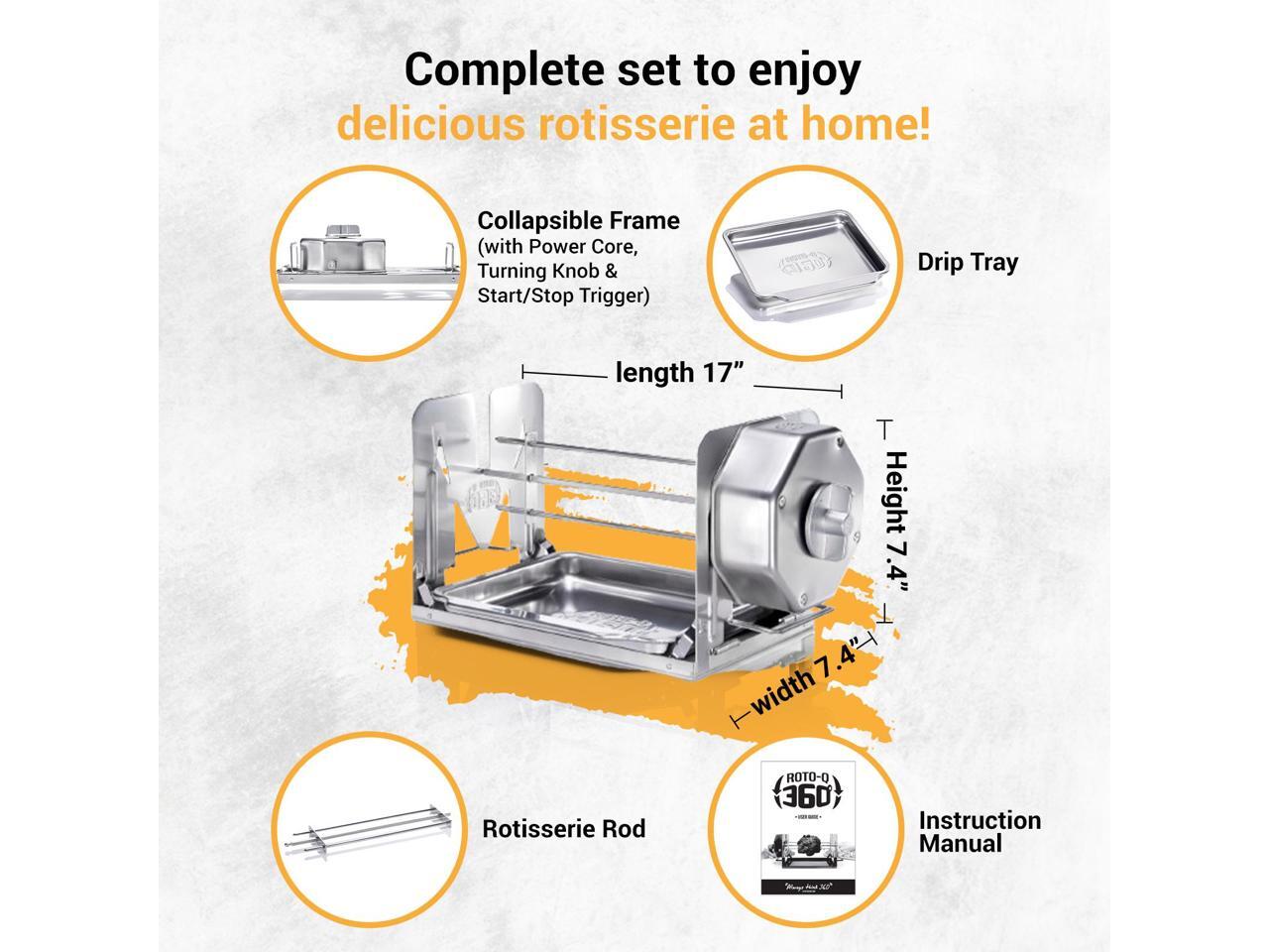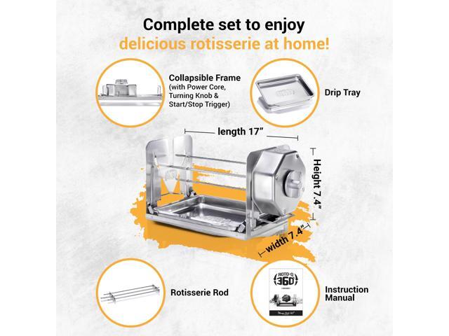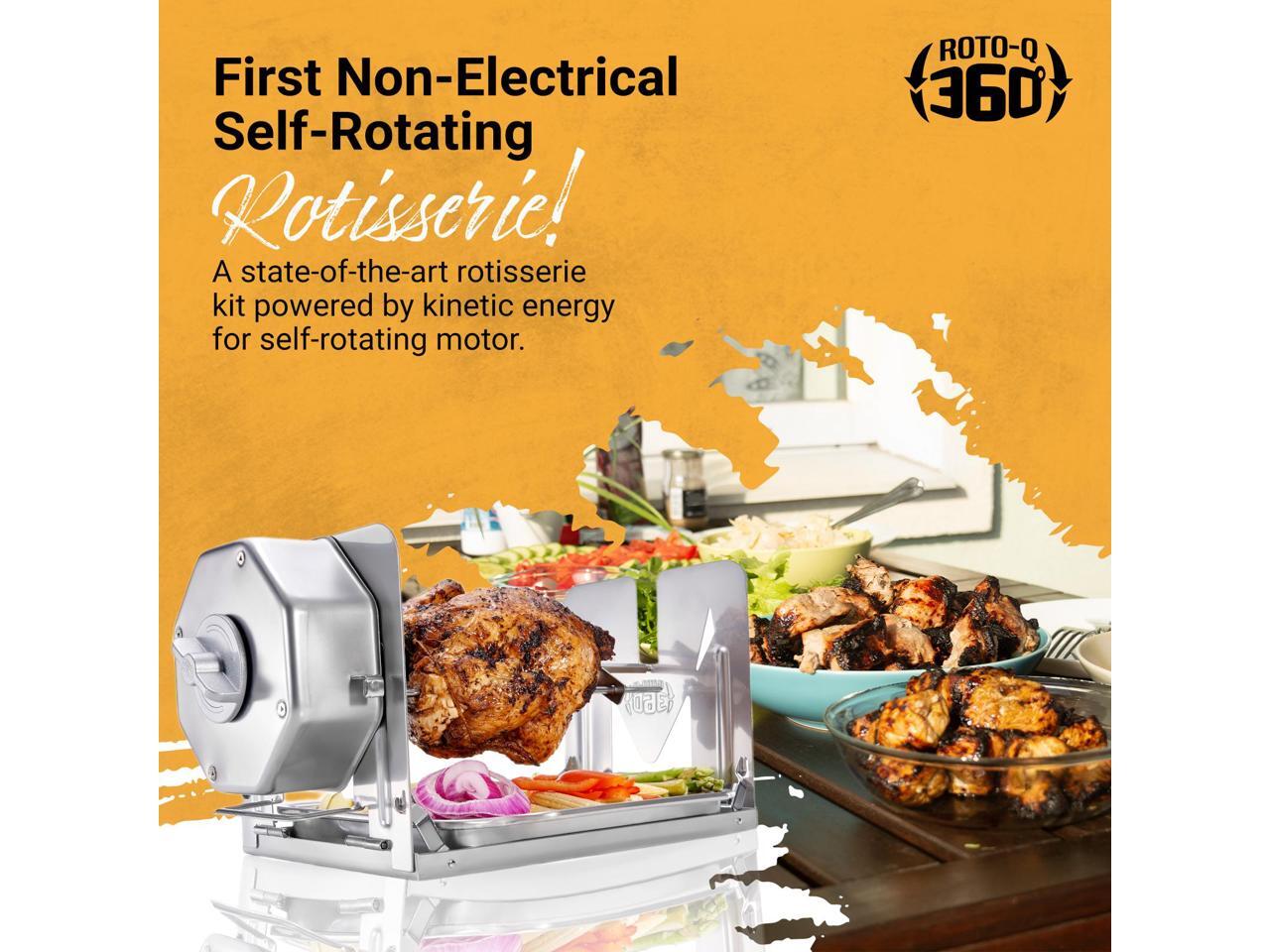 ROTO-Q 360 Basic Set | Universal Stainless Steel Non-Electric, Cordless Rotisserie for Grills, Ovens & Smokers | Portable Mechanical BBQ Rotisserie Kit