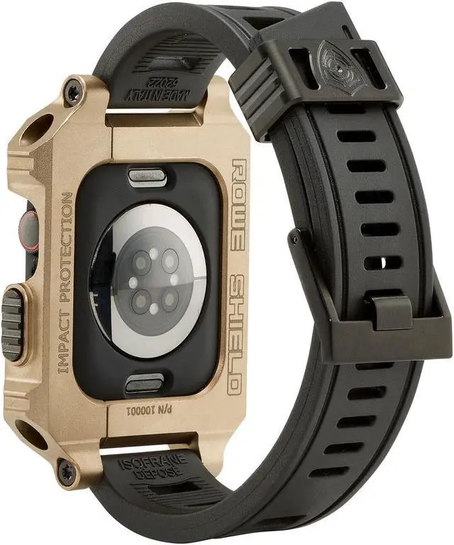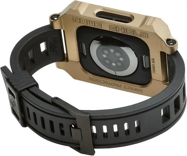 Rowe Tactical - Rowe Shield Apple Watch Case for Series 4/5/6/SE, Size 44mm with ISOFrane Band - CNC Machined from Aerospace Aluminum 6061-T651, PVD Coated Bronze (FDE)