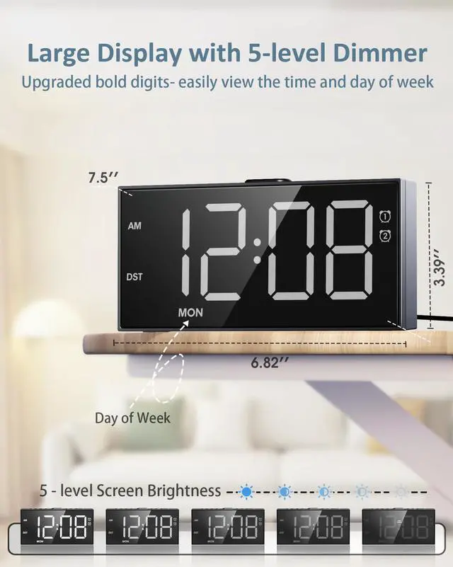 Alarm Clock Large Display with Big Clear Digits