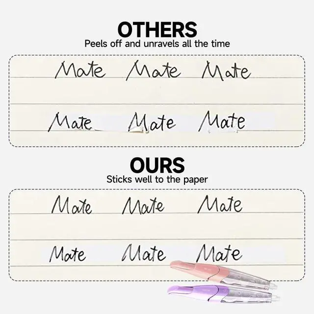 With 1.2 times the elasticity of the tape coverage force, any mistake can be passed in one stroke. Pick up any pen to easily write on the coating. You won't encounter a time when the pen tip scratches the white correction tape coating.