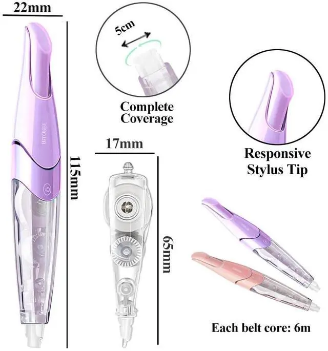 - REFILLABLE - Designed in the shape of a pen, get your mistakes corrected with BITOSEE's white correction tape precisely with the right and left hand.
