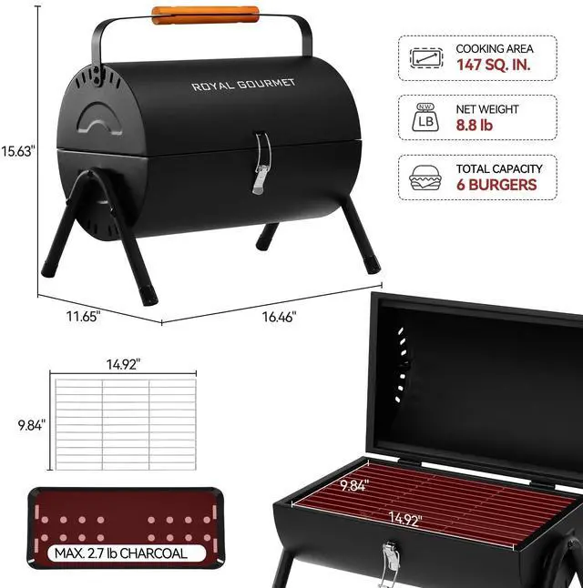 | Item Type Name | Royal Gourmet CC1015W Portable Charcoal Grill, 147 sq. in. Cooking Grid, Wooden Handle, Tabletop BBQ Grill for Outdoor Barbecue, Camping, Picnic, Backyard, Patio, Black |