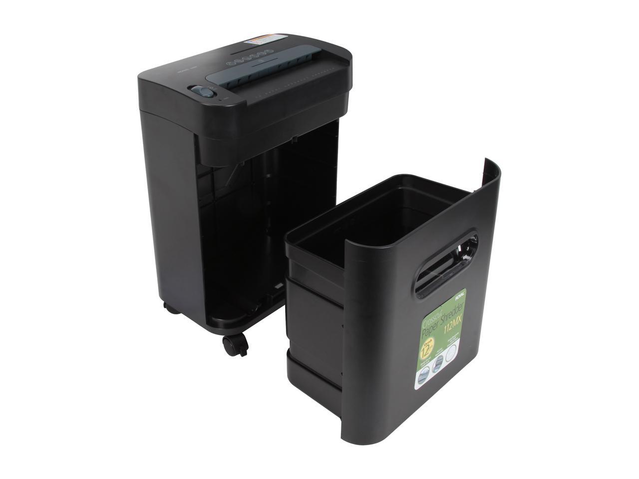 Shredding CDs, DVDs or sheets of paper in a single pass, the Royal 112MX 12-Sheet Crosscut Shredder is made for work or home-office use