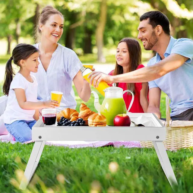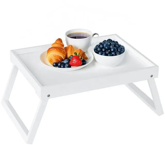 Enjoying breakfast in the bed with this serving tray. The bed tray adds a modern and stylish atmosphere to your room. Breakfast tray equipped with folding legs makes the serving trays easy to store and move.The bed tray is portable so you can take it anywhere in your home or outdoor.