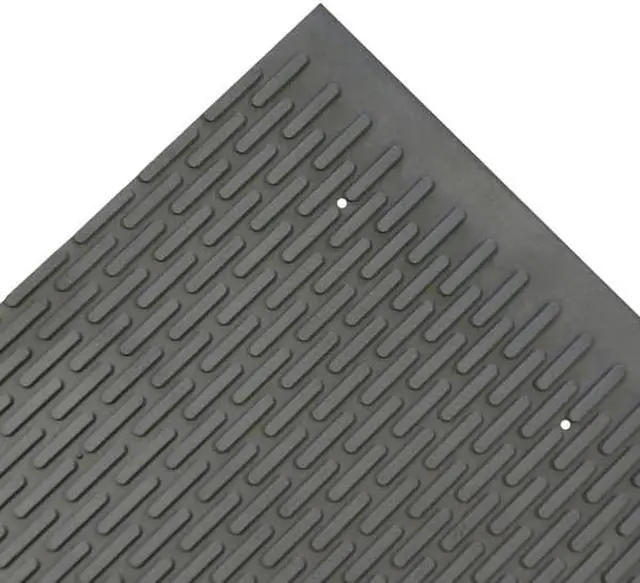 Rubber-Cal's Safe-Grip is a 7mm thick natural rubber entryway traction mat and runner that is available in 3 colors. This mat is perfect for any residential or commercial application needing increased traction and increased safety. Being that this mat is made from natural rubber, this is an ecologically responsible product. Natural rubber is an extremely comfortable and supple material that offers superior traction and scraping qualities. The raised "bar like" rubber protrusions scrape dirt, snow, and debris away while improving safety by increasing traction. This mat is designed for both outdoor and indoor use in high traffic doorways and entryways, where safety and cleanliness is always a concern. This rolled rubber product is ideal for seasonal use. With an 8ft roll only weighing 36lbs; mobility is increased making for a great mat for demanding weather. The Safe-Grip can be cleaned using any common commercial or household cleaning agent, a mop, or a hose, making this product easy and convenient to maintain.