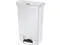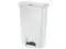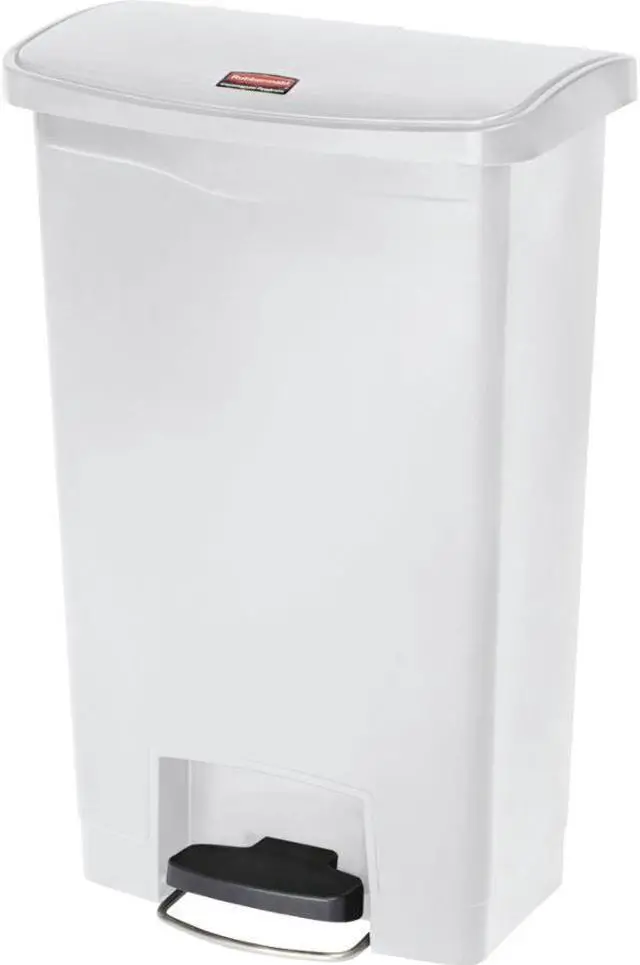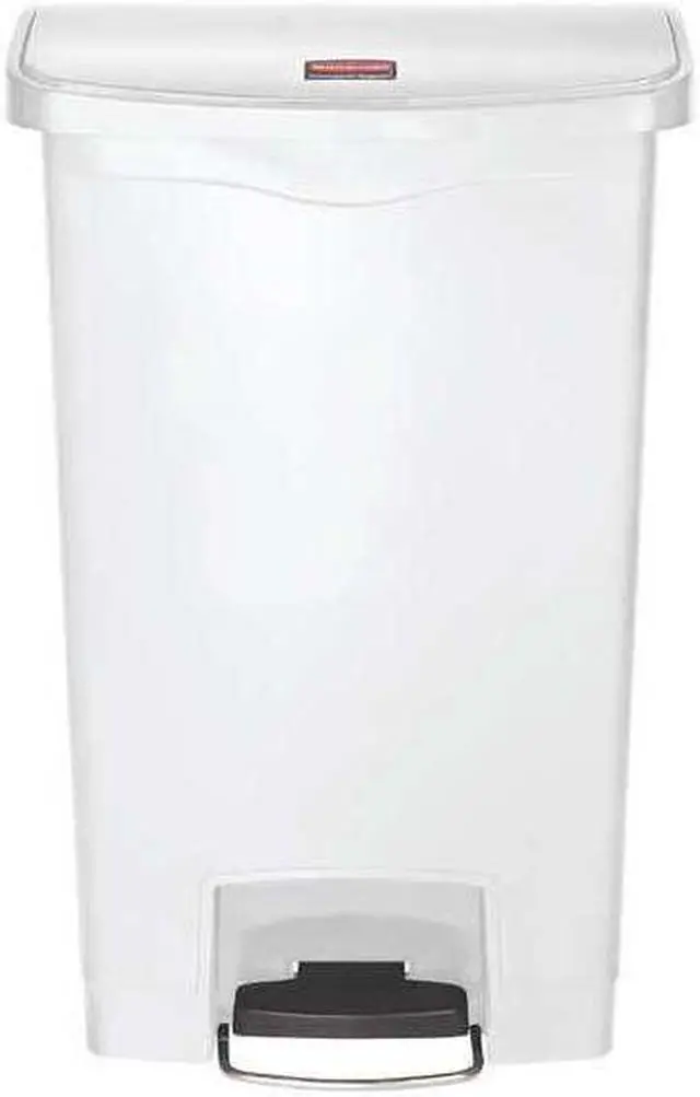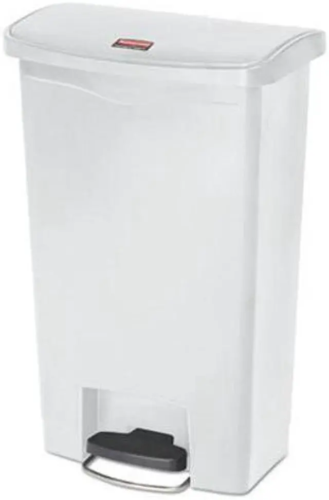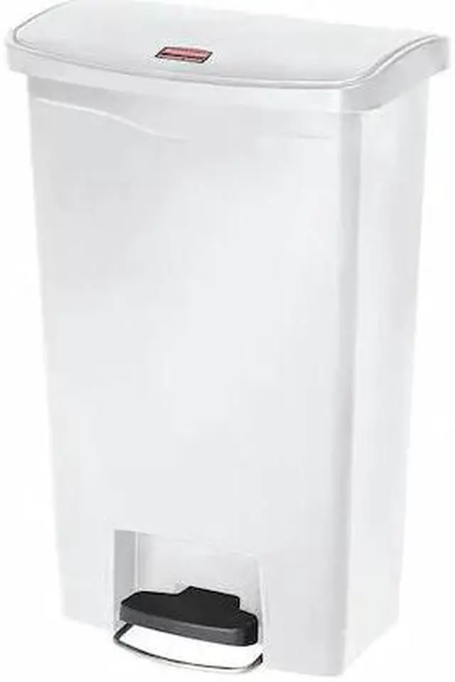 Designed to satisfy the diverse needs of any facility. Maximizes space efficiency with a small footprint and slim profile. Fits in even the tightest spaces. Internal hinge design prevents wall damage. Quiet and controlled lid-closure minimizes noise. Liner retainer band and cinch easily and securely holds can liners. Increased foot pedal clearance for easier access and operation. Global Product Type - Waste Receptacles-Rectangle, Lever Lid Waste Receptacle Type - Step-On Material (s) - Polyethylene Application - General Waste Capacity (Volume) - 13 gal Color (s) - White Opening Size (w x h) - 18 x 11 1/2 Shape - Rectangular Opening Type - Foot Pedal Lid Type - Hinged Width - 18 Depth - 11 1/2 Height - 28 3/8 Compliance Standards - FM Approved Pre-Consumer Recycled Content Percent - 0% Post-Consumer Recycled Content Percent - 0% Total Recycled Content Percent - 0% Special Features - Front Step Style