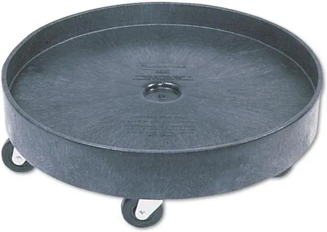The Rubbermaid Commercial Universal Drum Dolly Cart quickly and easily transports waste containers up to 500 lbs. throughout your facility. Easy to maneuver, this cart dolly makes waste collection more efficient, saves time, and reduces worker strain from heavy loads. It holds plastic containers, as well as 55-gallon drums. This sturdy drum dolly features professional-grade all-plastic construction that resists rust, chipping, and denting. The dependable, heavy-duty swivel casters provide enhanced mobility through busy work areas or tight spaces. For use with the Rubbermaid Commercial waste receptacles, FG265500, (sold separately).