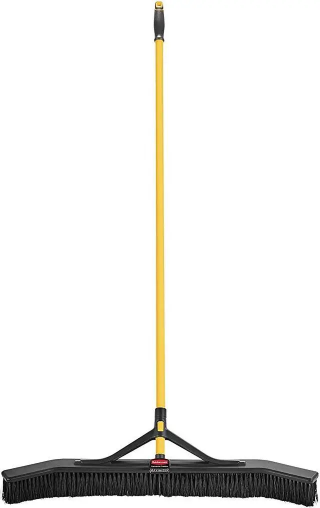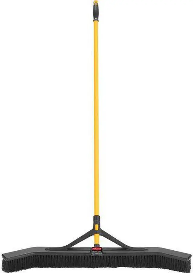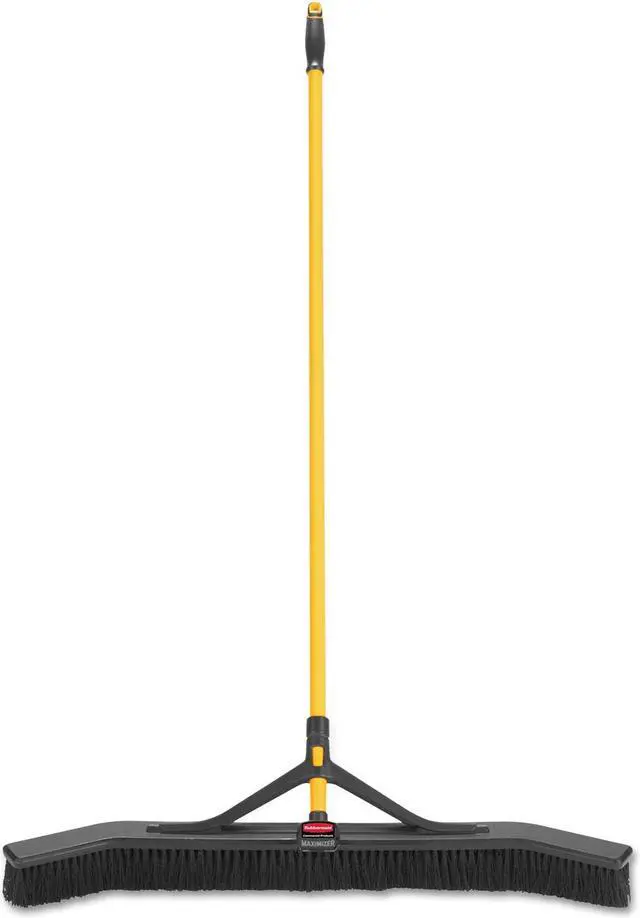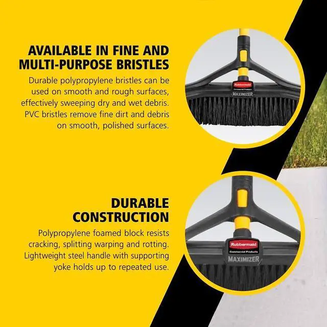 Maximizer Push to Center Broom features angled sides to capture more debris per stroke vs. standard push brooms. Durable polypropylene bristles can be used on smooth and rough surfaces, effectively sweeping different debris types. The 36" wide polypropylene foam block resists cracking, splitting warping and rotting. Lightweight steel handle with supporting yoke holds up to repeated use. Molded comfort handle reduces strain. Built-in hang hole allows convenient storage.