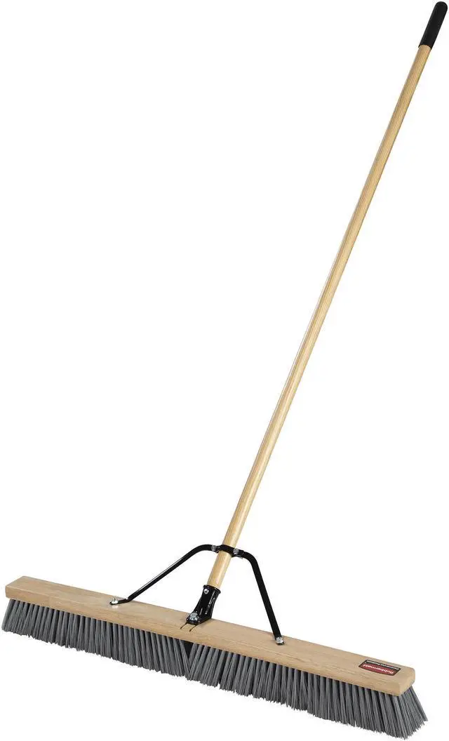 | Features | Effectively sweeping dry and wet debris with medium polypropylene bristles Solid wood block for durability Lacquered wood handle for smooth grip Fully assembled steel brace and die-cast aluminum connector for durability Removes debris in 40% fewer sweeps vs. previous Rubbermaid Commercial push brooms |