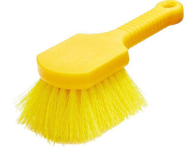 - The brush has yellow polypropylene fiber bristles and a yellow plastic structural foam block and handle.