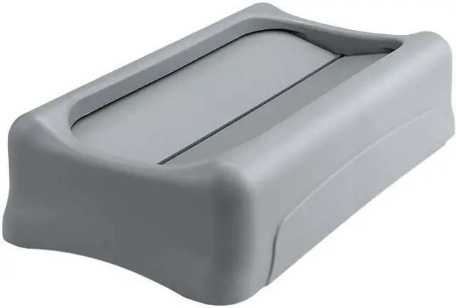 | Features | Use on Rubbermaid Slim Jim Containers Swings open for quick trash drops Swings back to hide trash from public view Counterbalanced to close by itself Great for restrooms, restaurants and snack areas |