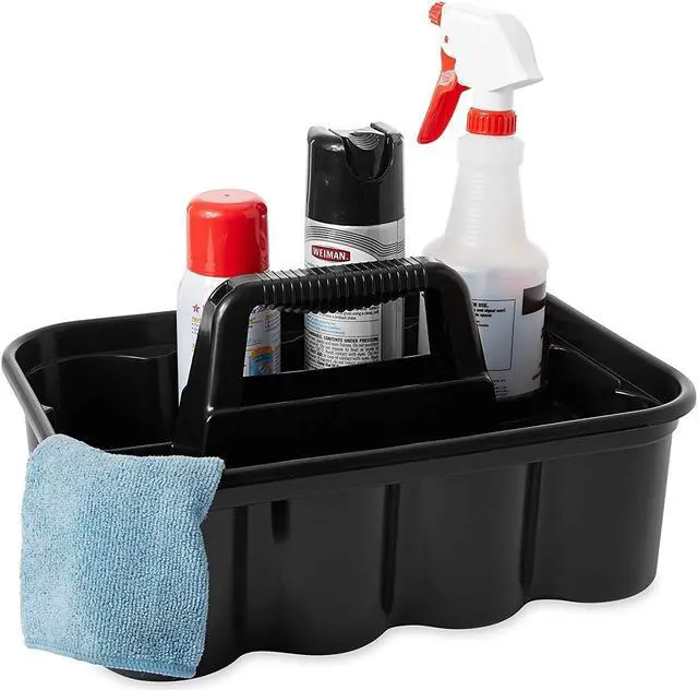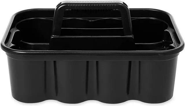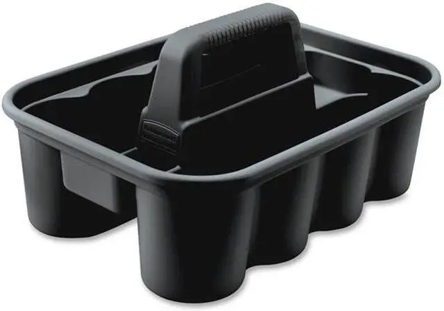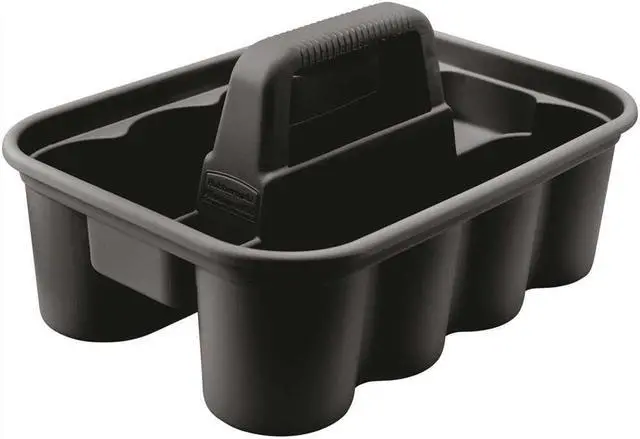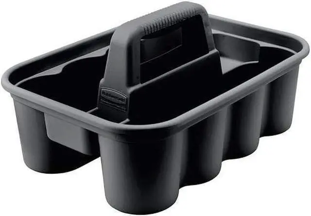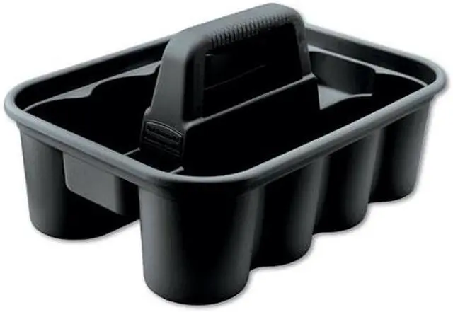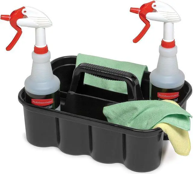 THIS ALL-PURPOSE CADDY IS PERFECT FOR CARRYING TOOLS OR CLEANING SUPPLIES. RUBBERMAID DELUXE CARRY CADDY CONVENIENTLY FITS ON CLEANING AND HOUSEKEEPING CARTS. SECURELY HOLDS UP TO EIGHT 32 OZ SPRAY BOTTLES AND OTHER COMMON CLEANING TOOLS. ERGONOMIC HANDLE DESIGN PROVIDES COMFORTABLE FIT.