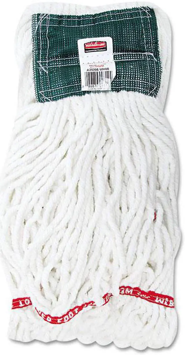 Contains antimicrobial protection, which inhibits the growth of bacteria that causes odors and stains. Withstands repeated launderings without shrinkage, while looped ends and tailbanding reduce tangling for like-new performance after every wash. Colorfast fibers will not shrink or fade with repeated launderings. Pre-laundered and pre-shrunk for longer product life. PVC-coated mesh headband prohibits moisture penetration and resists chemicals. Head Type: Wet Mop; Application: Floor Maintenance; Mop Head Style: Looped End; Mop Head Size: Medium.