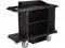 The Rubbermaid Commercial housekeeping cart is a complete system solution for housekeeping in the hospitality industry. Perfect for organizing and transporting cleaning equipment and supplies, the cleaning cart has 3 shelves and a vinyl bag. Molded plastic construction resists germs and its smooth surface is easy to clean. Bumpers around the cart's lower edges help prevent marking on walls. Includes hooks, a vacuum holder, and under deck shelf. Assembly required. Housekeeping Cart, Black, Polypropylene