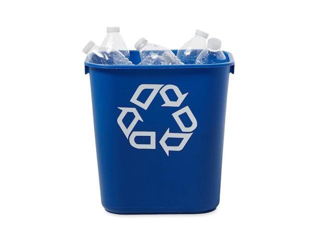 Small Deskside Recycling Container, Rectangular, Plastic, 13.625Qt, Bl