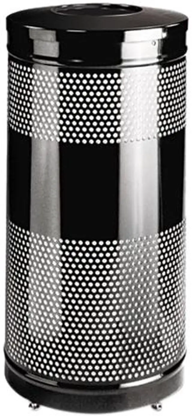 Rubbermaid Commercial S3ETBK Classics Perforated Open Top Receptacle, Round, Steel, 25 gal, Black