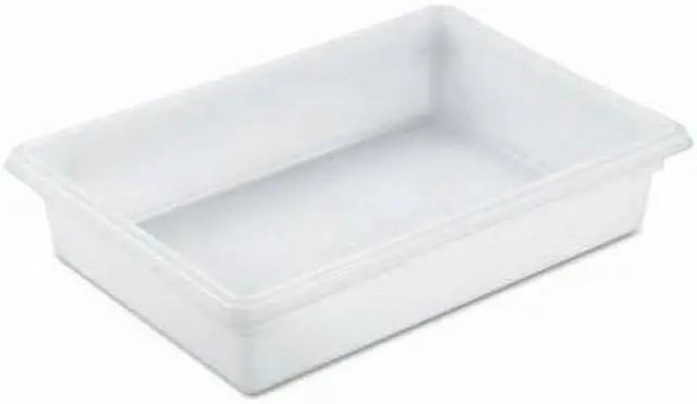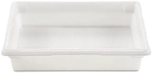 The Rubbermaid Commercial Food Storage Tote/Box is a durable, versatile and sized to fit into existing racks and counters. These bulk food storage containers are NSF and USDA Certified and constructed of break-resistant polycarbonate. Boxes and lids are dishwasher and freezer safe, include date panels, and have snap-on lids that are tight-fitting. Food Container Type: Storage/Tote Box; Material(s): Polyethylene; Capacity (Volume): 8.5 gal; Color(s): White.