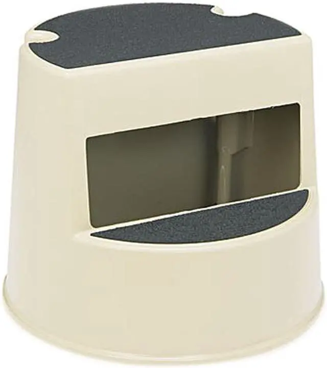 Casters retract when stepped on. Antiskid bottom. Textured step surface.