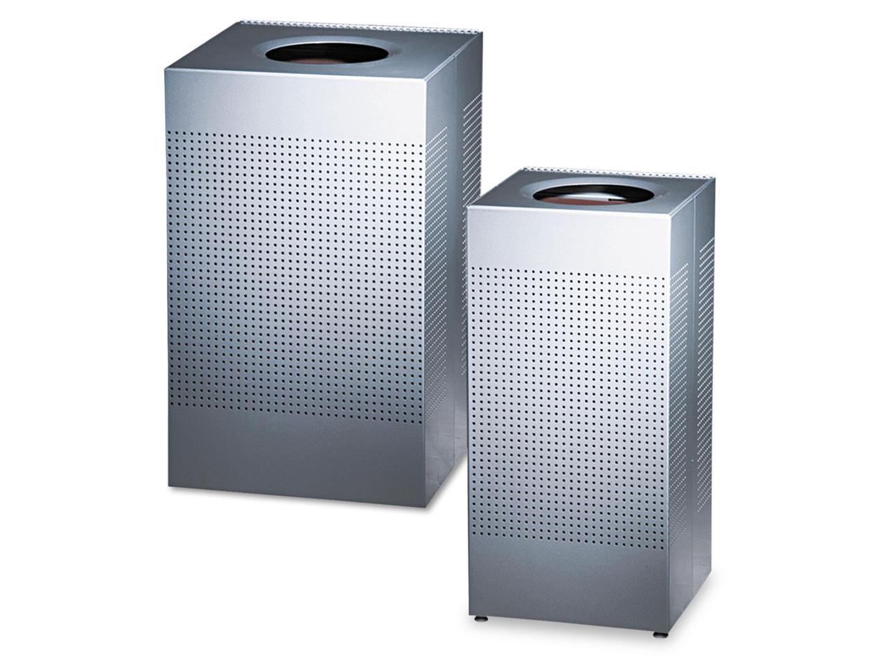 Half-round, fire-safe waste receptacle with corrosion-proof, heavy-gauge steel construction