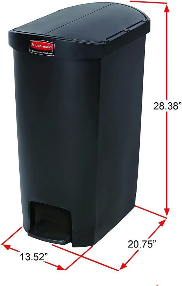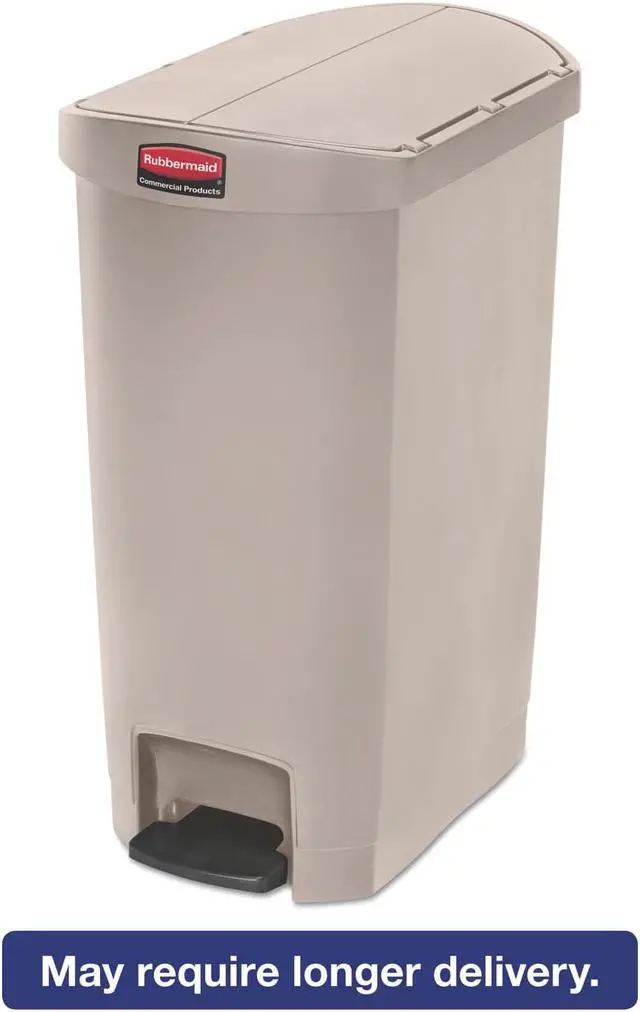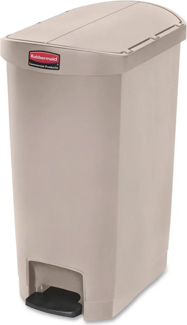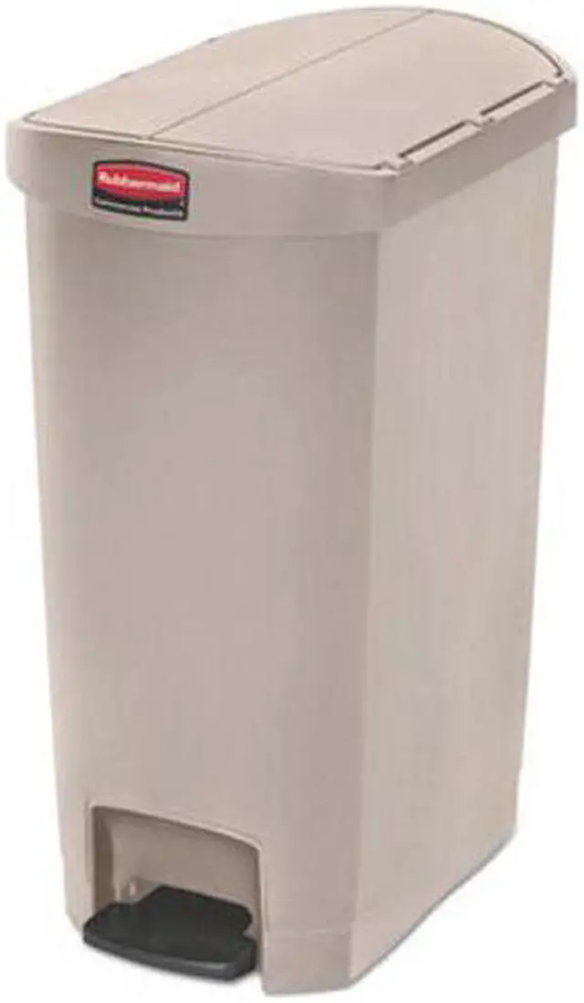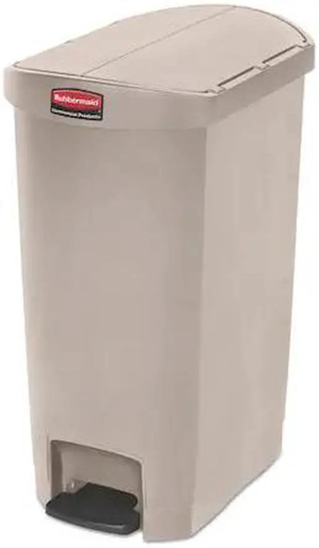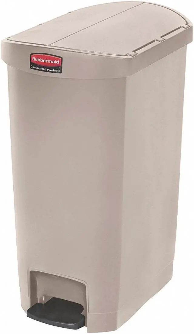 Designed to satisfy the diverse needs of any facility. Maximizes space efficiency with a small footprint and slim profile. Fits in even the tightest spaces. Internal hinge design prevents wall damage. Quiet and controlled lid-closure minimizes noise. Liner retainer band and cinch easily and securely holds can liners. Increased foot pedal clearance for easier access and operation. Global Product Type - Waste Receptacles-Rectangle, Lever Lid Waste Receptacle Type - Step-On Material (s) - Polyethylene Application - General Waste Capacity (Volume) - 13 gal Color (s) - Beige Opening Size (w x h) - 13 1/2 x 20 3/4 Shape - Rectangular Opening Type - Foot Pedal Lid Type - Hinged Width - 13 1/2 Depth - 20 3/4 Height - 28 3/8 Compliance Standards - FM Approved Pre-Consumer Recycled Content Percent - 0% Post-Consumer Recycled Content Percent - 0% Total Recycled Content Percent - 0% Special Features - End Step Style