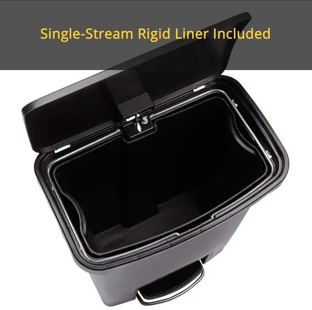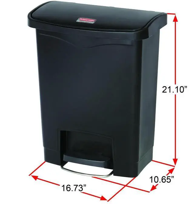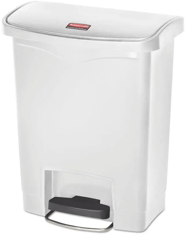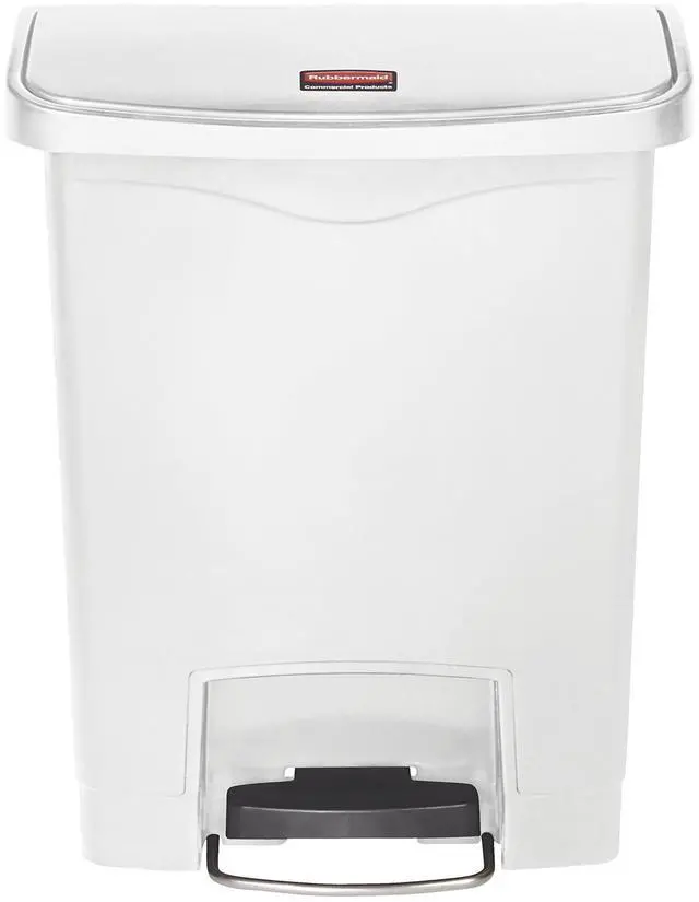 Designed to satisfy the diverse needs of any facility. Maximizes space efficiency with a small footprint and slim profile. Fits in even the tightest spaces. Internal hinge design prevents wall damage. Quiet and controlled lid-closure minimizes noise. Liner retainer band and cinch easily and securely holds can liners. Increased foot pedal clearance for easier access and operation. Global Product Type - Waste Receptacles-Rectangle, Lever Lid Waste Receptacle Type - Step-On Material(s) - Polyethylene Application - General Waste Capacity (Volume) - 8 gal Color(s) - White Opening Size (w x h) - 16 3/4 x 10 3/4 Shape - Rectangular Opening Type - Foot Pedal Lid Type - Hinged Width - 16 3/4 Depth - 10 3/4 Height - 21 1/8 Compliance Standards - FM Approved Pre-Consumer Recycled Content Percent - 0% Post-Consumer Recycled Content Percent - 0% Total Recycled Content Percent - 0% Special Features - Front Step Style